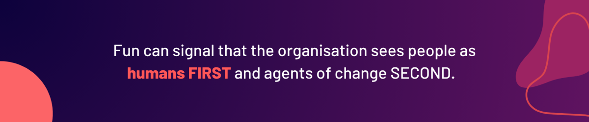 When we apply fun to change initiatives, we are thinking about the human experience just as intentionally as we are thinking about timelines and budgets.